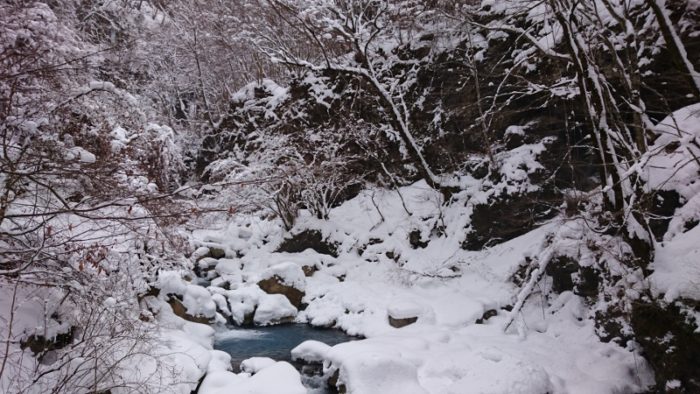 ちなみに、この週の月曜日からまとまった雪が降ったおかげか、白銀の渓谷を堪能できた。同行した友人も喜んでいた。冬のスッカン沢は降雪後がオススメかと思う。