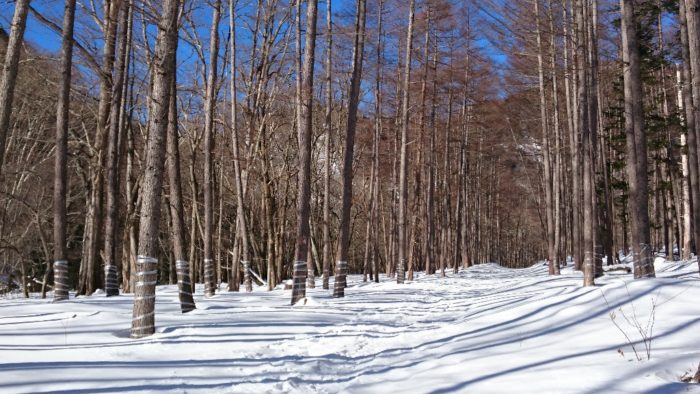 戦場ヶ原、小田代ヶ原は大晦日ということもあり人もまばらで、前日まで断続的に降ったと思われる雪が踏み固められることもなく、わりとふかふかの雪を歩くことができた。