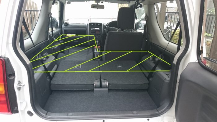 ジムニー(JB23W)の車中泊ベットにかかわらず、車内に設けるベットの高さの違いで変わる部分を端的に挙げると以下。