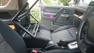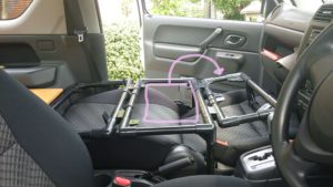 ジムニー(JB23W)車中泊ベッドの前席部が形になったので公開しようと思う。