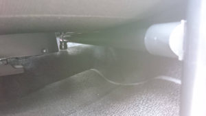 ⑧運手席側、助手席ドア側のベッド脚を梁でつなげる。写真は運転席側(助手席ドア側も同様)
