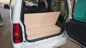 ジムニー車中泊ベッドの後部座席からラゲッジスペースまでの問題点を修正した