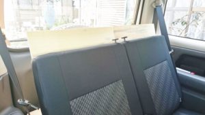 後部座席シート背面の大きさに合わせてカットのビフォー&アフター。