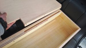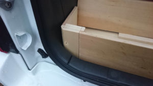 BOXの角とラゲッジスペースのコーナーのカーブの面が合わないことで生じるガタツキを解消することと、ラゲッジスペース全体を無駄なく使うことを目的にBOXのコーナージョイントを作った。