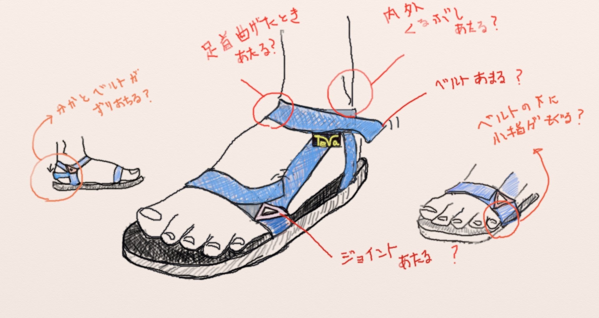 - ユニバーサルストラップ (Tevaの代名詞。独自のストラップベルトの構造)