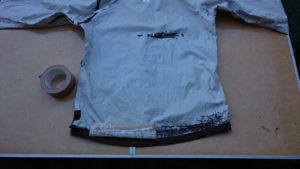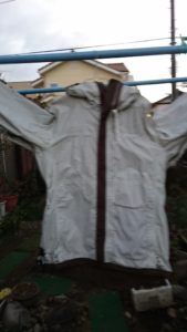 なにか白っぽく汚らしいけど、これが乾燥させた状態。もしも、両袖まで剥がしきれていれば剥離したコーティングの粉が落ちることもなく通常使用には耐えられそう…たぶんだけど。